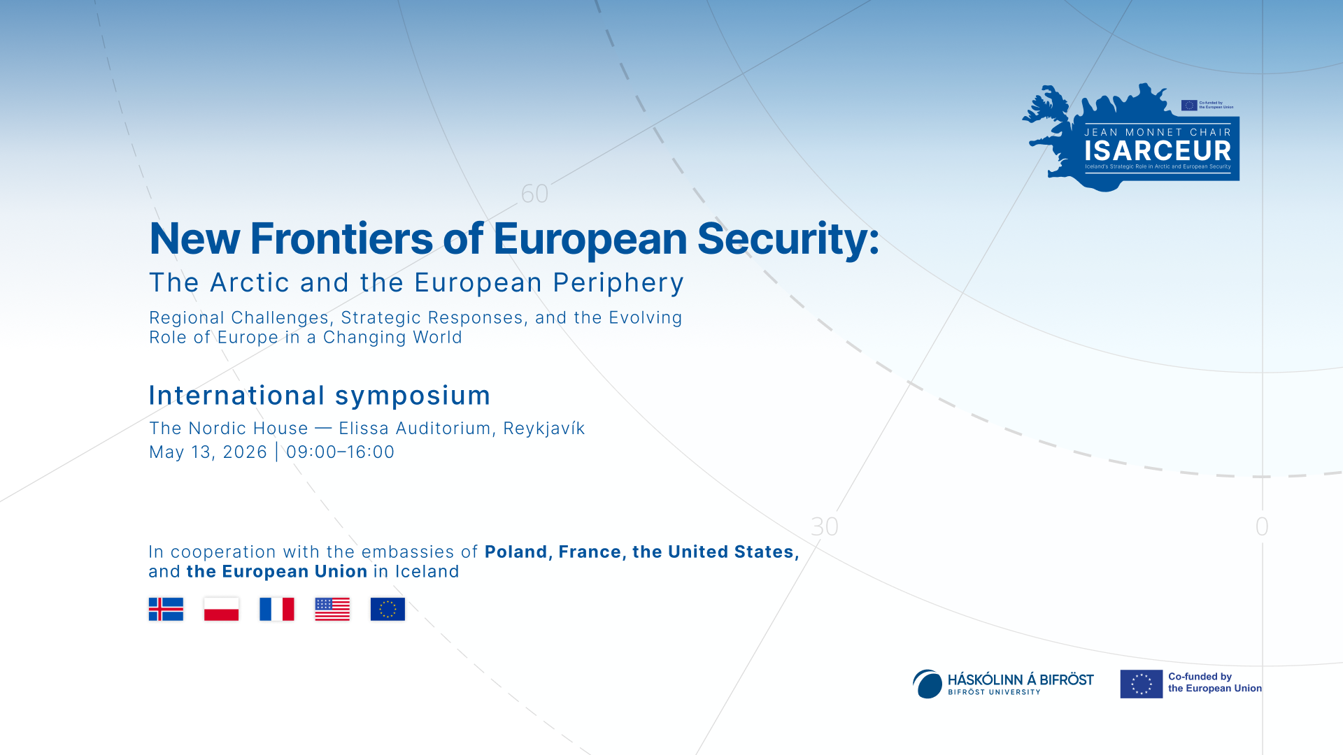 The symposium is organized under the Jean Monnet Chair project Iceland’s Strategic Role in Arctic and European Security (ISARCEUR) at Bifröst University, in cooperation with the embassies of Poland, France, the United States, and the European Union in Iceland.