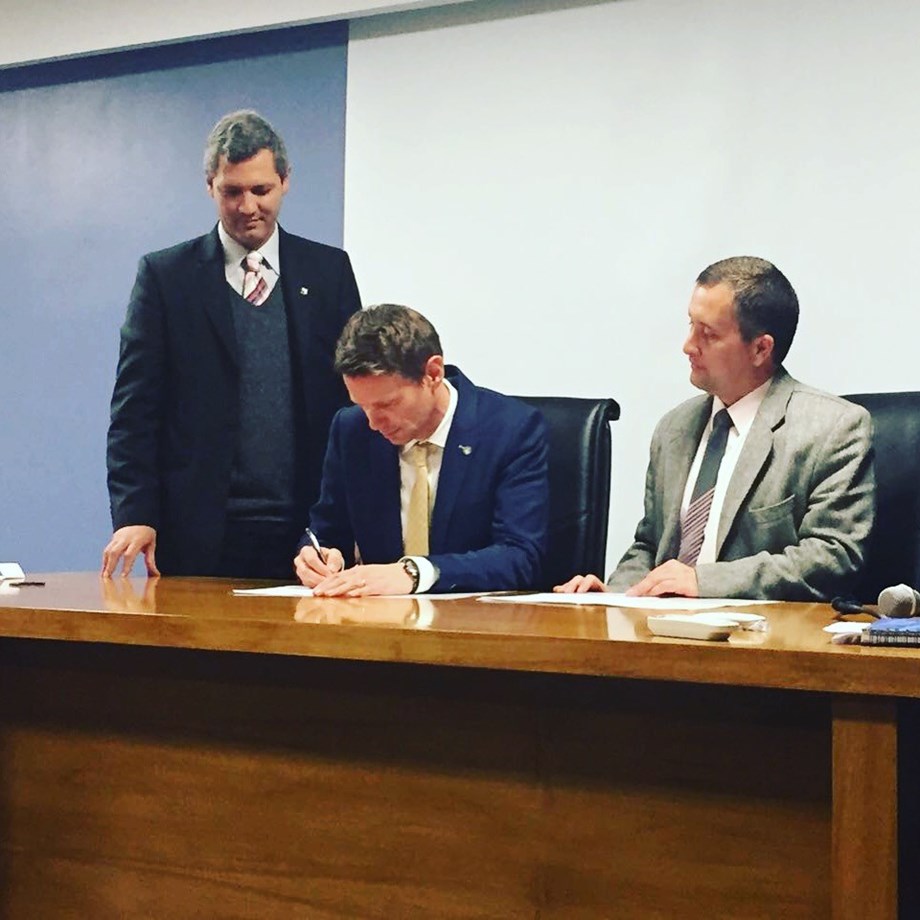 Á meðfylgjandi mynd sést Magnús undirrita samstarfssamning við hagfræðideild Cuyo háskóla í San Juan ásamt deildarforseta þeirrar deildar Dr. Leonardo David Saball. Að baki þeirra stendur alþjóðafulltrúi deildarinnar Julio Adrían Bastias.