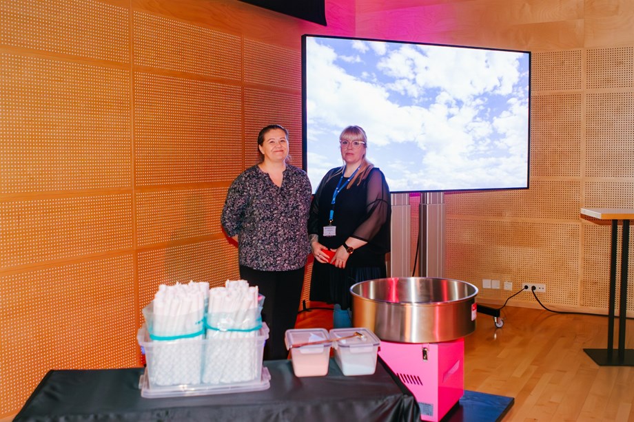 Jóhanna og Sólveig í Hofi vegna vísindaferðar Gulleggsins í Hofi, sl. föstudag,að gera allt klárt fyrir kandífloss-gerðina...